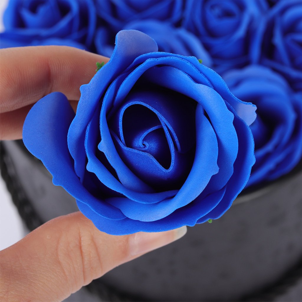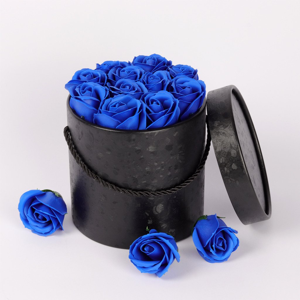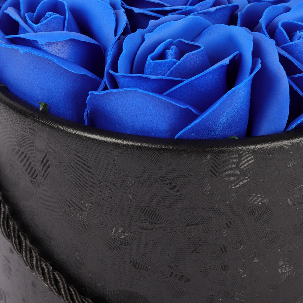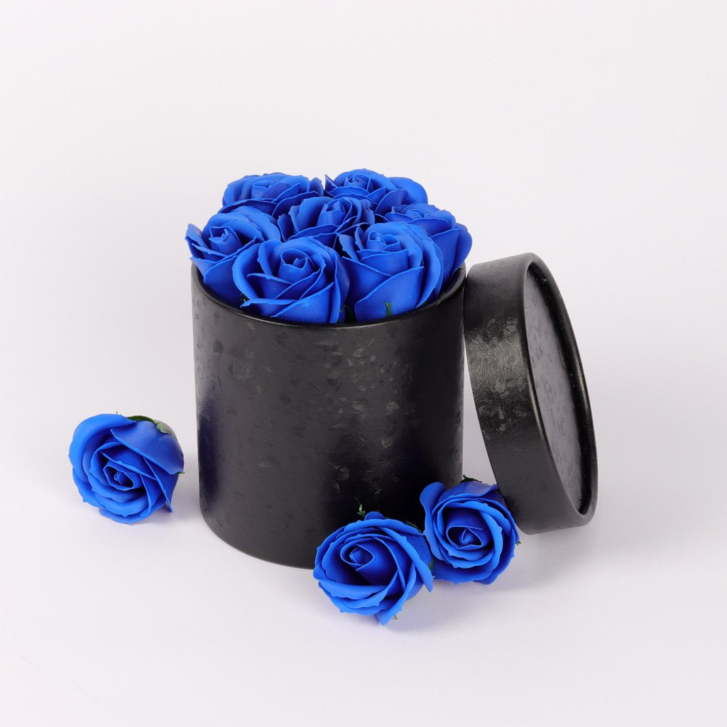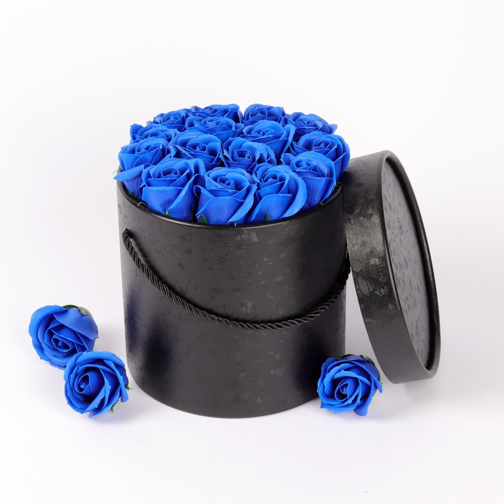 Mýdlové růže ve flower boxu černém - královsky modré růže