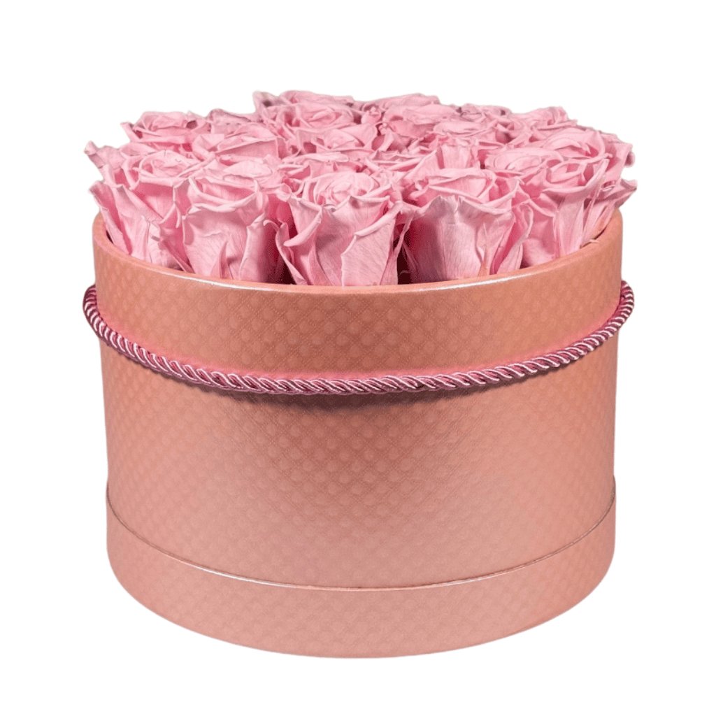 Růžový Elegance Box - Svatební růže: Elegance Box s dvaceti jedna svatebními růžemi v růžovém boxu je něžný a luxusní, perfektní pro svatební dary. Svatební růže v růžovém boxu symbolizují nevinnost a lásku, ideální pro svatební dekorace. Stabilizované - věčné růže jsou přírodní růže, které byly speciálně ošetřeny, aby si uchovaly svůj vzhled a čerstvost po dlouhou dobu.